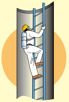 有限空間危險源辨識 1、空氣缺氧 空氣中一般含21%氧氣,在下列情況下氧氣可能減少,威脅生命: ❶ 耗氧化學反應 氧氣因氣化而消耗,例如焊接、氣焊切割、銹蝕、明火工序、發(fā)酵、發(fā)霉。 ❷ 取代 氧氣被惰性氣體所排擠,例如氮氣、氬氣、二氧化碳。 ❸ 表面吸收 氧氣被多孔表面所吸附,例如活性碳。